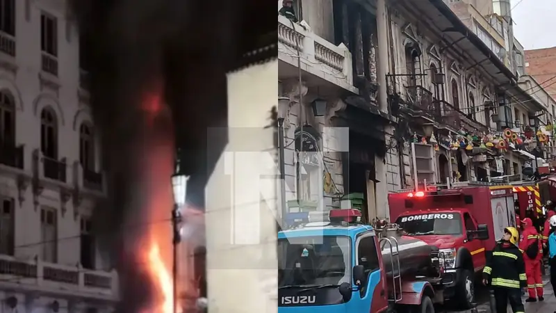 Un incendio de grandes proporciones se registra la madrugada de este lunes en una casa patrimonial ubicada en la calle Sagárnaga, en el centro de la ciudad de La Paz, donde funcionan varios negocios adaptados como una galería comercial.