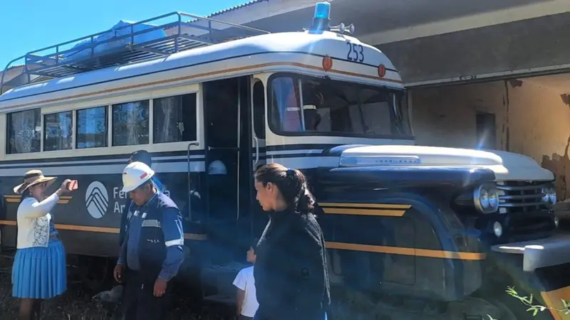 El vehículo es un Nissan modelo 1960 adaptado a la vía férrea, con capacidad para 25 pasajeros, acondicionado para brindar un viaje seguro y cómodo.
