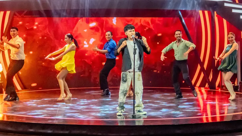 Con una propuesta diferente, Andrés interpretó el tema “Camisa Negra” del reconocido artista Juanes, apostando por una reversión en género mexicano pop que buscó darle un sello propio a su actuación.