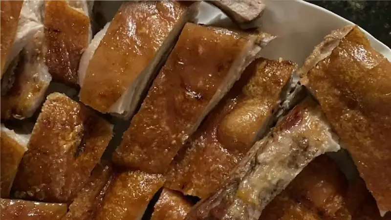 En otro recipiente colocar sal rosada ahumada, y esparcirla en todo el cuero del cerdo, llevar al horno por 2 horas a 160° C. Al pasar este tiempo sacar el cerdo del horno y quitarle toda la sal que habíamos puesto encima del cuero, y volver a meter al horno por 45 minutos más hasta que la piel quede crocante.