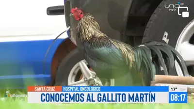 El gallo Martín es un ave que vive en el patio interior y los pasillos del Hospital Oncológico hace más de dos años. Se pasea por los alrededores recibiendo el cariño del personal y de los familiares de los diferentes pacientes, que lograron ver el crecimiento del ave gracias a sus cuidados.