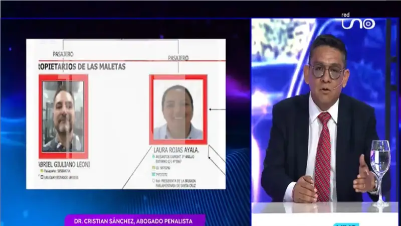 El caso de las 'maletas' provenientes de Estados Unidos continúa sumando detenidos, pero las interrogantes sobre los autores intelectuales y el contenido real del cargamento parecen alejarse de una respuesta oficial. Para el abogado penalista Cristian Sánchez, la figura del uruguayo-estadounidense Gabriel Giuliano Leoni, quien ingresó al país junto a la exdiputada Laura Rojas, no es circunstancial, sino operativa.