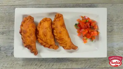 Cortar la Mortadela Jamonada Sofía y el queso en cuadritos. Tomar una tapita de empanada y colocarle queso, Mortadela Jamonada Sofía, la cebolla y procedemos a cerrar la empanada con un repulgado para que no se salga el contenido. Hacemos esto con todas nuestras tapas que nos quedan. Una vez que tenemos todas nuestras empanadas armadas procedemos a fritarlas en aceite caliente.