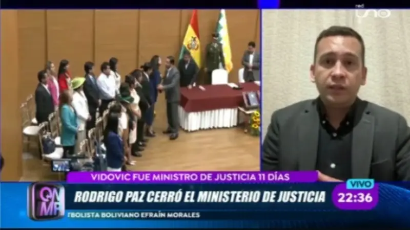 El presidente del TSJ destacó la determinación del presidente Paz, quien ordenó la eliminación del Ministerio de Justicia. “La determinación es motivo de júbilo y es una señal clara del compromiso asumido por el presidente para contribuir a la reforma judicial”.