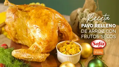 No puede faltar en tu mesa de noche buena, un delicioso pavo relleno de arroz con frutos secos. Haz esta receta fácil y exquisita que dejará deleitados a tus invitados esta noche especial.