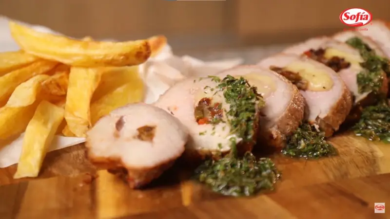 ¿Sos amante de la carne? proba esta deliciosa receta de punta de S rellena acompañada con nuestra salsa de chimichurri, que de seguro te gustara. Adquiere tu Carne de cerdo Sofía en nuestra Tienda Sofía
