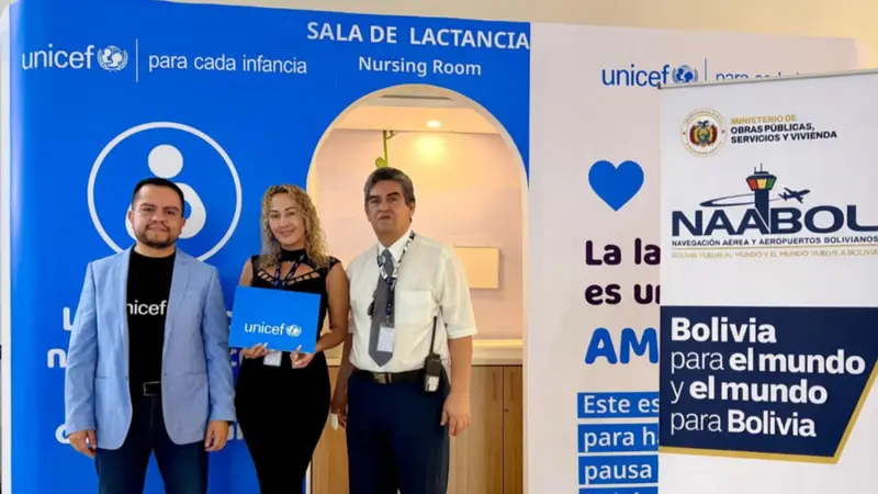 En el marco de la celebración del mes de la niña y el niño en Bolivia, UNICEF Bolivia y NAABOL (Navegación Aérea y Aeropuertos Bolivianos) inauguraron este martes 14 de abril una sala de lactancia materna en la sala de preembarque internacional del aeropuerto de Viru Viru, en Santa Cruz, con el objetivo de brindar un espacio adecuado, seguro y digno para las madres y sus hijas e hijos pequeños.