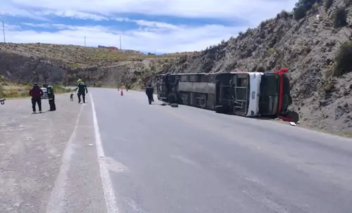 Tras el vuelco, el bus colisionó con una vagoneta blanca, que transitaba en sentido contrario.