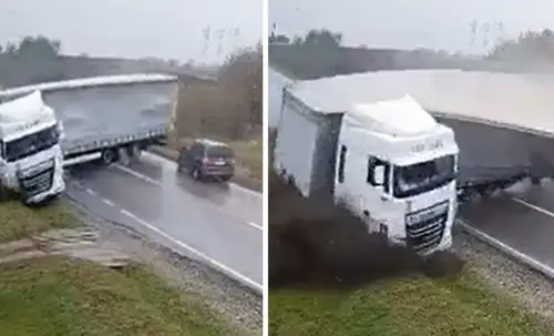 Internacional[Imágenes fuertes] Camión pierde el control y aplasta un cocheUn escalofriante accidente registrado en una carretera mojada terminó con la vida de dos personas atrapadas dentro de su automóvil, mientras un camión perdió el control y provocó la tragedia.PorLigia Portillo