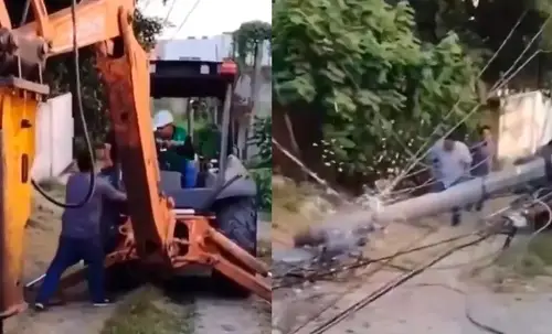Alcalde derriba un poste de luz al simular trabajar en excavadora