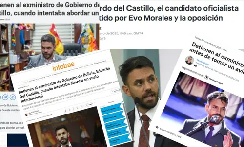 InternacionalAsí reflejó la prensa internacional la aprehensión de Del CastilloLa aprehensión del exministro de Gobierno de Bolivia, Eduardo Del Castillo, ocurrida en la madrugada de este martes, captó la atención de medios internacionales.PorJhovana C.