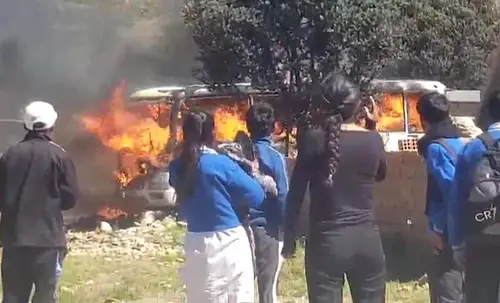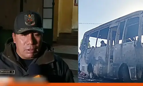 PolicialVIDEO: Así se incendió el bus escolar en Potosí que dejó 5 fallecidosEl bus tenía instalada una garrafa de GLP, que provocó el incendio y el deceso de cinco adolescente. Ocho alumnos lograron salvarse escapando por las ventanas.PorMilen Saavedra
