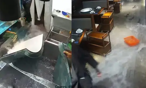 InternacionalVIDEO| Enorme pecera se rompe e inunda un restaurante en ChinaEl insólito incidente fue captado en video y rápidamente se volvió viral en redes sociales. El comedor quedó completamente cubierto de agua con decenas de peces vivos.PorJhovana C.