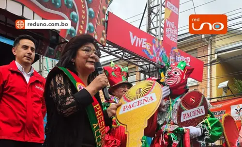 Con una entrega simbólica de tres llaves, autoridades, comparsas y auspiciadores declararon al Pepino como embajador del Carnaval Paceño.
