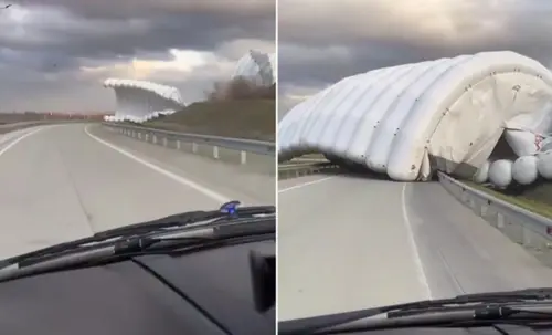 VIDEO: Carpa inflable fuera de control corta carretera en Rusia