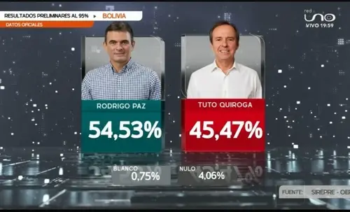 Minuto a minuto: Resultados preliminares Rodrigo Paz gana con el 54,5%