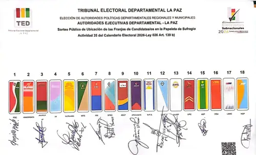 Uno decideDefinen orden de partidos en la papeleta para Gobernación de La PazEl sorteo público estableció la ubicación de los 18 frentes en carrera para las elecciones subnacionales en La Paz.PorJuan Marcelo Gonzáles