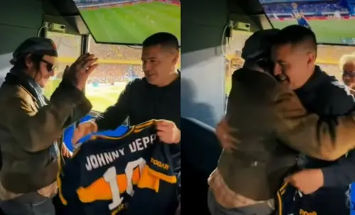 DeportesJohnny Depp recibe una camiseta de Boca y su reacción en viralEl actor presenció el triunfo xeneize sobre Tigre y recibió de Juan Román Riquelme una camiseta personalizada que desató furor en redes sociales. PorMartin Suarez Vargas
