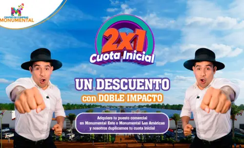 Espacio empresarialMonumental lanza su promoción 2x1 en la cuota inicialAdemás de la promoción ofrece planes de pago a sola firma, únicamente con carnet de identidad, hasta en 5 años de plazo.PorSilvia Sanchez