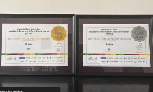 Productores del trópico de Cochabamba fueron reconocidos en los Cacao of Excellence Awards, consolidando el prestigio internacional del cacao silvestre boliviano por su calidad, sabor y biodiversidad.