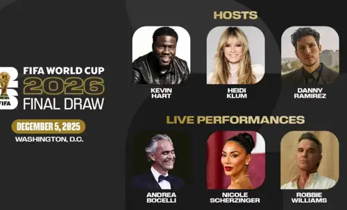 DeportesFútbol, estrellas y show en vivo: así será el sorteo del Mundial 2026El sorteo final de la Copa Mundial de la FIFA 2026 reunirá a un elenco de artistas de primer nivel. PorMartin Suarez Vargas
