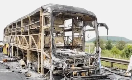 InternacionalAl menos 20 muertos al incendiarse un autobús tras chocar con una motoLa moto quedó atrapada bajo el vehículo con el depósito de combustible abierto, lo que provocó un incendio que se propagó rápidamente.PorEFE