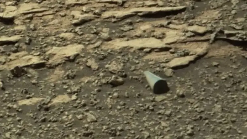 Allí, las cámaras del róver registraron un pequeño cilindro de unos 20 centímetros, con un extremo más angosto y una superficie uniforme que contrasta con el entorno rocoso y erosionado.