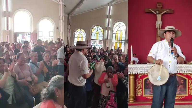El párroco de San Martín de Porres se vuelve viral en redes por su particular forma de impartir bendiciones y celebrar las tradiciones chapacas en plena misa.