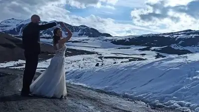 La pareja, conformada por una boliviana y un estadounidense, realizó una sesión de fotos en la Cumbre como un innovador recuerdo de bodas.