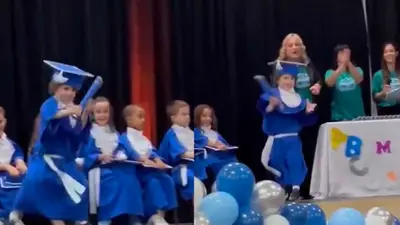 Un niño no pudo contener su emoción al recibir su diploma en su primer año escolar, haciendo reír a todos con su entusiasmo y su inconfundible energía.