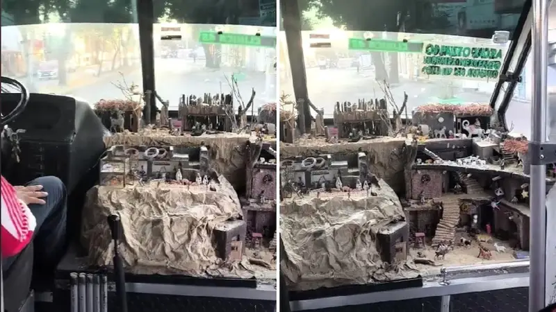 La unidad de transporte, que circula por las calles de la capital mexicana, se ha convertido en una sensación global gracias a un monumental nacimiento navideño instalado directamente sobre el tablero y la cubierta del motor.
