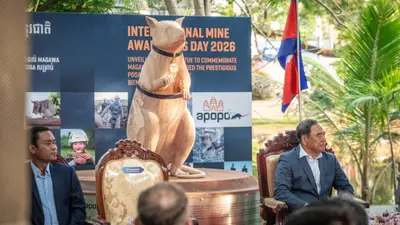 "Ante nosotros se alza Magawa: una criatura pequeña, pero que transformó el mundo", declaró Ly Thuch, primer vicepresidente de la Autoridad Camboyana de Acción contra las Minas y Asistencia a las Víctimas (CMAA), durante la presentación.