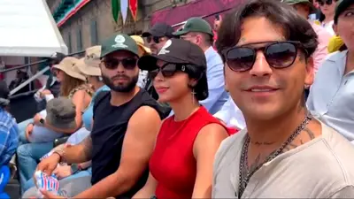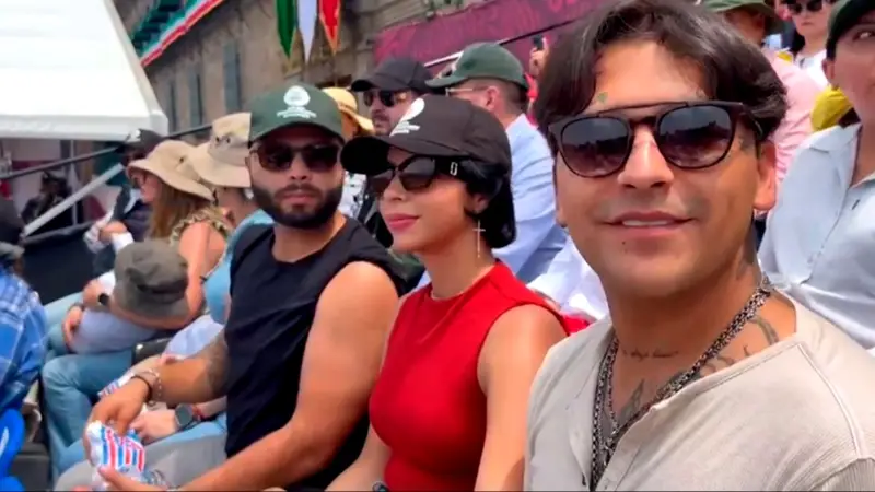 Nodal y Ángela llegaron puntuales a la cita en el Centro Histórico de la Ciudad de México. Ahí, ocuparon un lugar entre las gradas y se dejaron ver muy atentos a lo que sucedía en la plancha del Zócalo. Como se aprecia en las fotos y videos, también estuvieron presentes Leonardo Aguilar, hermano de Ángela, y el padre de ambos, Pepe Aguilar, quien ocupó un lugar detrás de ellos.