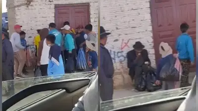 Pero la acción se repite por un segundo grupo de niños, quienes de igual forma rodean a la persona de la tercera edad y le brindan de una mayor cantidad de bolsas con masitas, dulces y galletas que obtuvieron rezando a los difuntos.