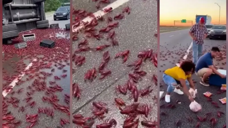 Un camión volcó en la Interestatal 10, cerca de Baton Rouge, provocando un inusual derrame de cangrejos de río vivos que paralizó el tráfico y dejó una escena tan caótica como sorprendente.
