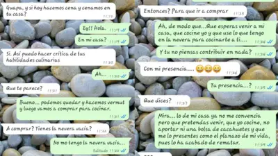 Ella, sin muchas ganas de seguir la conversación, respondió un seco: “Ah…”. Pero el chico insistió: “¿Qué te parece?” Intentando darle una oportunidad, ella propuso: “Bueno… podemos quedar y hacemos vermut. Y luego vamos a comprar para cocinar”.