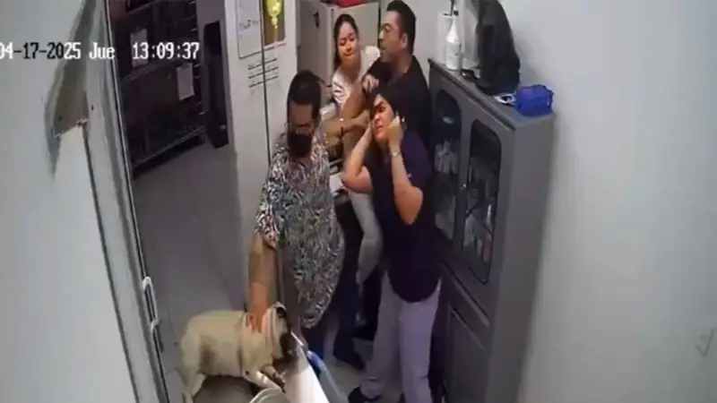 La dueña, visiblemente alterada, reaccionó de forma violenta y comenzó a jalar del cabello a la doctora dentro del consultorio. El ataque quedó grabado en las cámaras de seguridad del establecimiento, donde se observa cómo la mujer arrebata el cabello de la veterinaria mientras otros miembros del personal intentan intervenir y piden la intervención de la Policía.