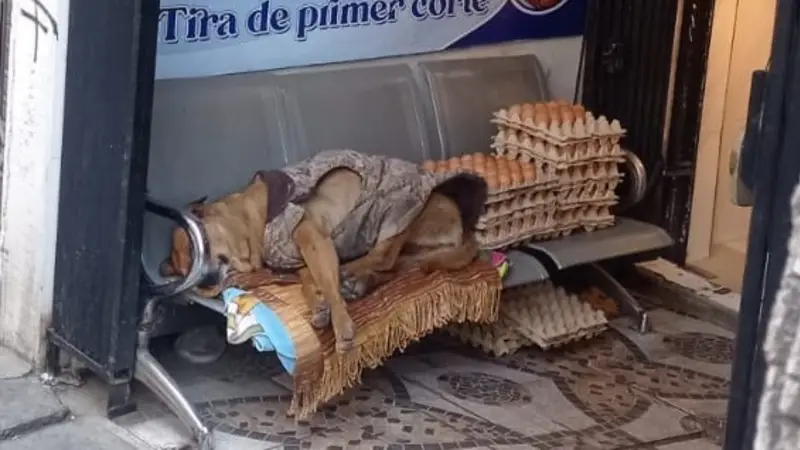La "Asociación Huellitas Bolivia" mediante su cuenta de Facebook agradeció a una carnicería de la ciudad de La Paz por acomodar una camita para un perro callejero.
