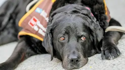 Eika es el nombre del perro de apoyo judicial que, por primera vez en España, ha entrado este miércoles junto a la víctima en la sala de vistas de un juicio oral por un caso de violencia de género.