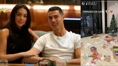“Tornado en casa”, escribió la Georgina en su cuenta de Instagram al mostrar el desorden que quedó luego de abrir los regalos. Sin embargo, lo que más sorprendió a los seguidores no fue el caos típico de una mañana navideña, sino lo sencillo del árbol que adornaba el hogar del astro portugués.