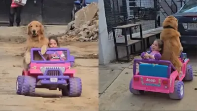 En el clip se observa a la niña manejando con total concentración, sin perder de vista el camino, mientras el perro viaja sobre el jeep de juguete con una calma, lo que llamó la atención de todos. Lejos de mostrarse inquieto, el golden retriever permanece sereno, disfrutando del paseo y demostrando una clara complicidad con su pequeña dueña.
