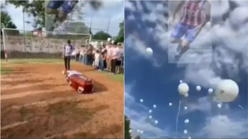 Durante la ceremonia, una pelota fue pateada hacia el ataúd y, tras el rebote, cruzó la línea de gol. El gesto fue acompañado por aplausos y la liberación de los globos al cielo, en medio de lágrimas y abrazos.