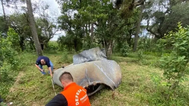 Un hombre escuchó un estruendo durante la madrugada y luego de investigar halló una pieza de metal retorcido que cayó del cielo. El increíble suceso se registró en São Mateus do Sul, al sur del estado de Paraná, en Brasil.