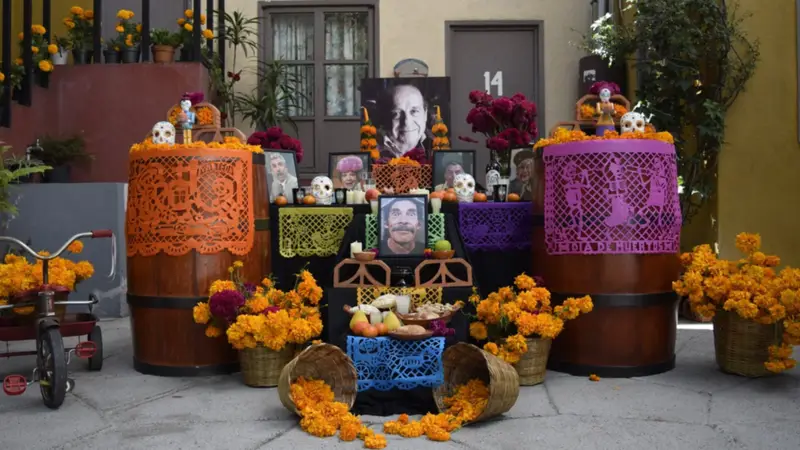 "La ofrenda ya está lista en nuestra bonita vecindad para recibir a nuestros seres queridos. Ya los estamos esperando, como cada año, con cempasúchil, pan de muerto, el recuerdo de todas las risas que nos dieron y con muchísimo cariño."