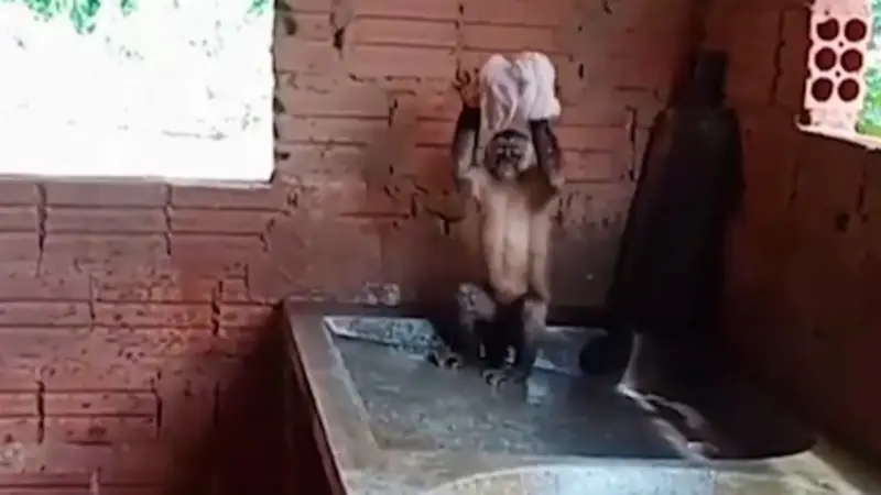 El video fue grabado en Brasil y muestra al primate imitando a su dueña mientras golpea prendas contra el lavadero. Las imágenes se volvieron virales entre risas… y cuestionamientos.