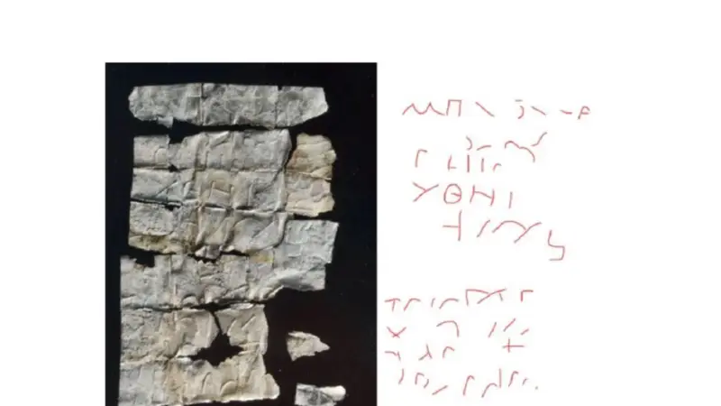 Se trata de una hoja de plata forjada extremadamente fina donde está inscrito un texto que los expertos han descrito como una “carta dirigida a Dios”. En el texto, reconocen las letras griegas antiguas HI, TETA, NI y RO, en mayúsculas, lo que se puede leer como HRIS, es decir, CRISTO.