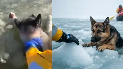Las imágenes, muestran la desesperación del perrito, quien se aferraba con sus patas delanteras a una placa de hielo para evitar ser succionado por la corriente helada. Ante la mirada atenta de los vecinos, los bomberos desplegaron una balsa de rescate y, maniobrando con precisión sobre la superficie inestable, lograron acercarse lo suficiente para sujetar al can y subirlo a bordo, poniéndolo fuera de peligro.