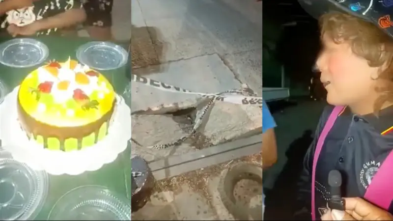 “Estamos celebrando el cumpleaños de esta alcantarilla, hemos traído a un payasito, estamos celebrando sus dos años de cumpleaños de este bache, que hasta ahora no pueden arreglar”, compartió Marco Antonio, uno de los vecinos de la zona.
