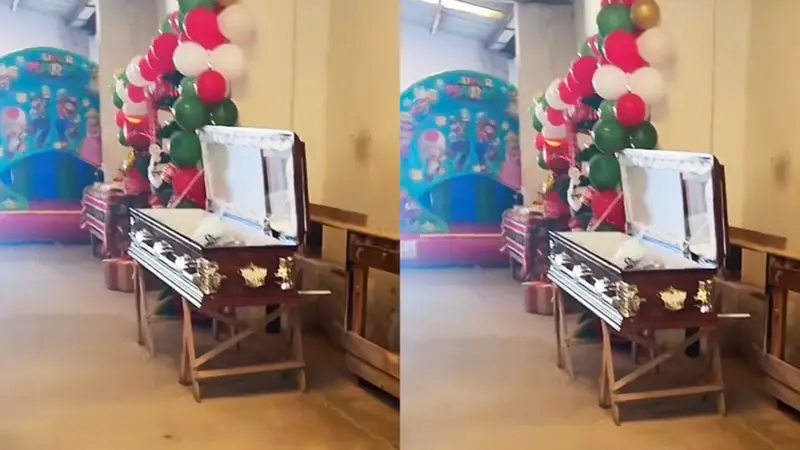 Dulce García, autora del video viral, explicó que el insólito objeto era parte de la fiesta organizada por su madre, quien trabaja en una fábrica de ataúdes. “Fue un adorno y también una hielera”, comentó.