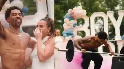 El video muestra no solo la sorpresa de los presentes, sino también la habilidad del futuro padre, quien incluso realizó una voltereta con la pesa en manos antes de que el humo indicara el género de su bebé.